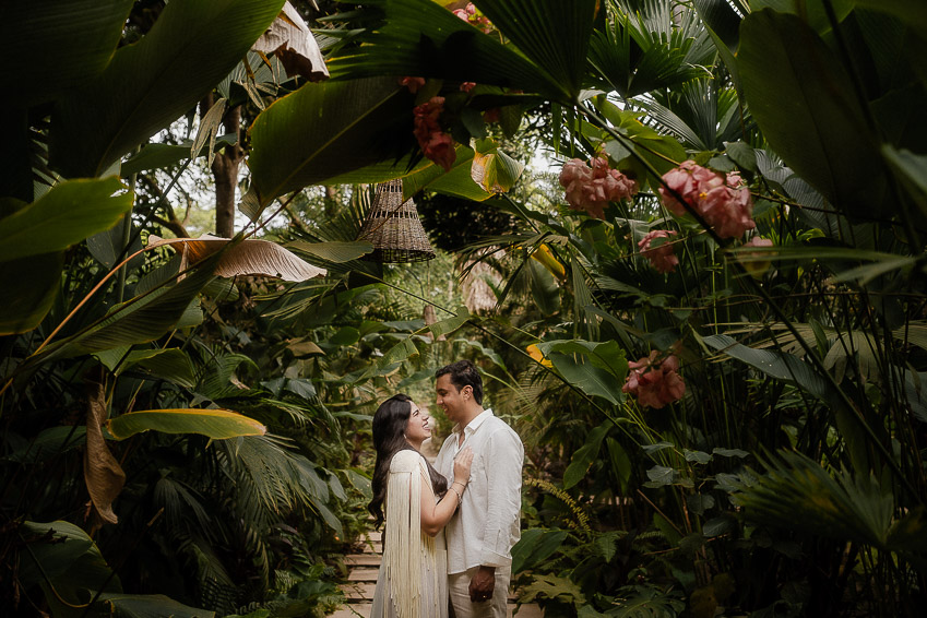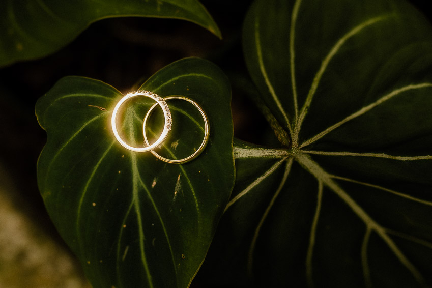Bodas en la naturaleza, entre hojas, luz dorada y amor sin prisa.